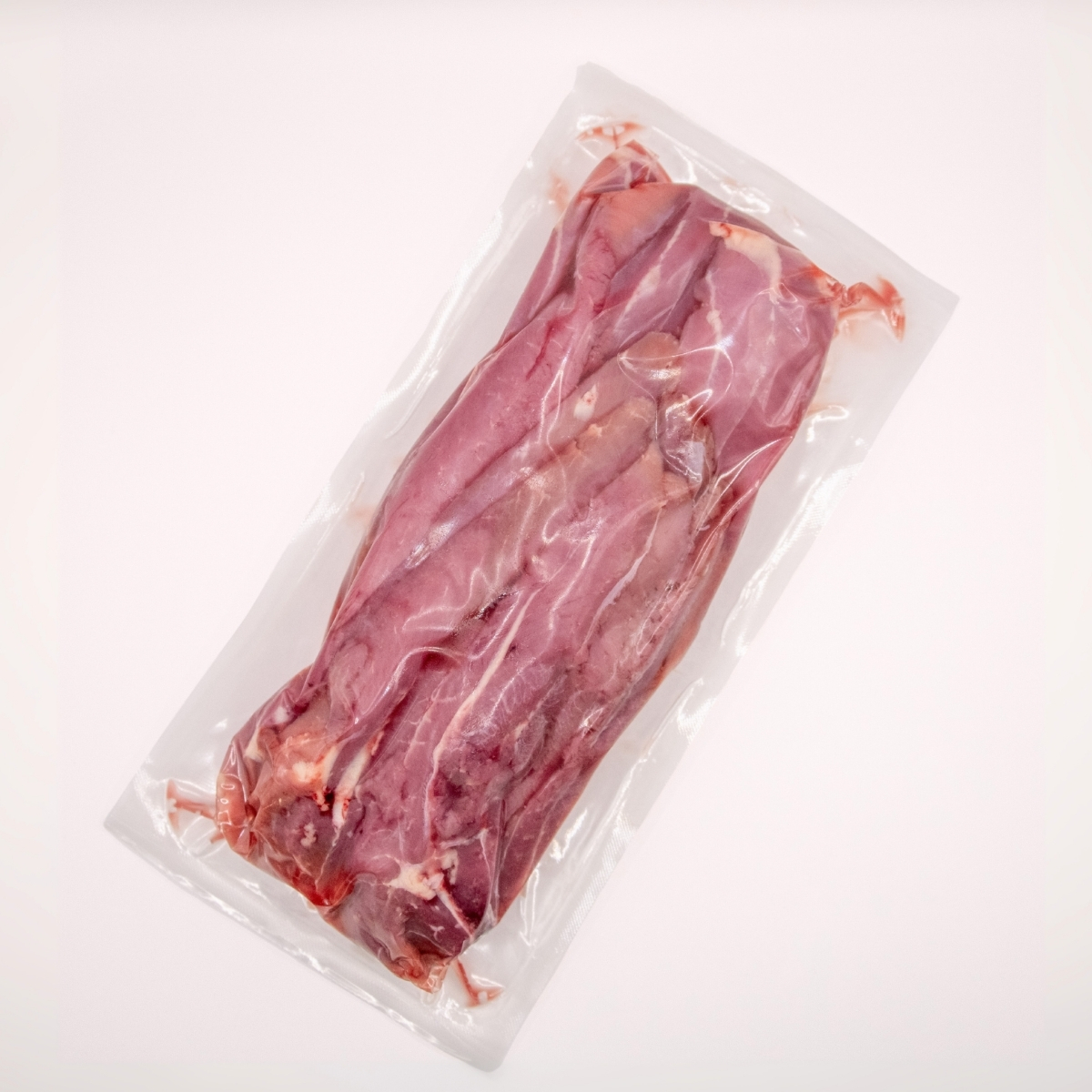 Aiguillettes de canard – environ 400g. Fines et tendres, idéales pour une cuisson rapide à la poêle. Produit cru, prêt à cuisiner. Sous vide.