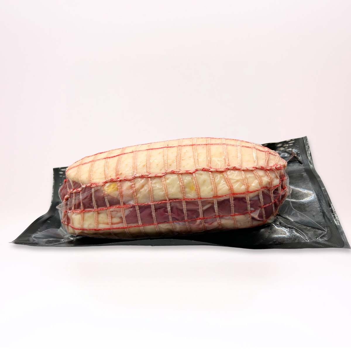 Le goût pur du magret de canard, sans artifice. Ce rôti est élaboré à partir de deux magrets ficelés à la main, simplement assaisonnés de sel et de poivre.